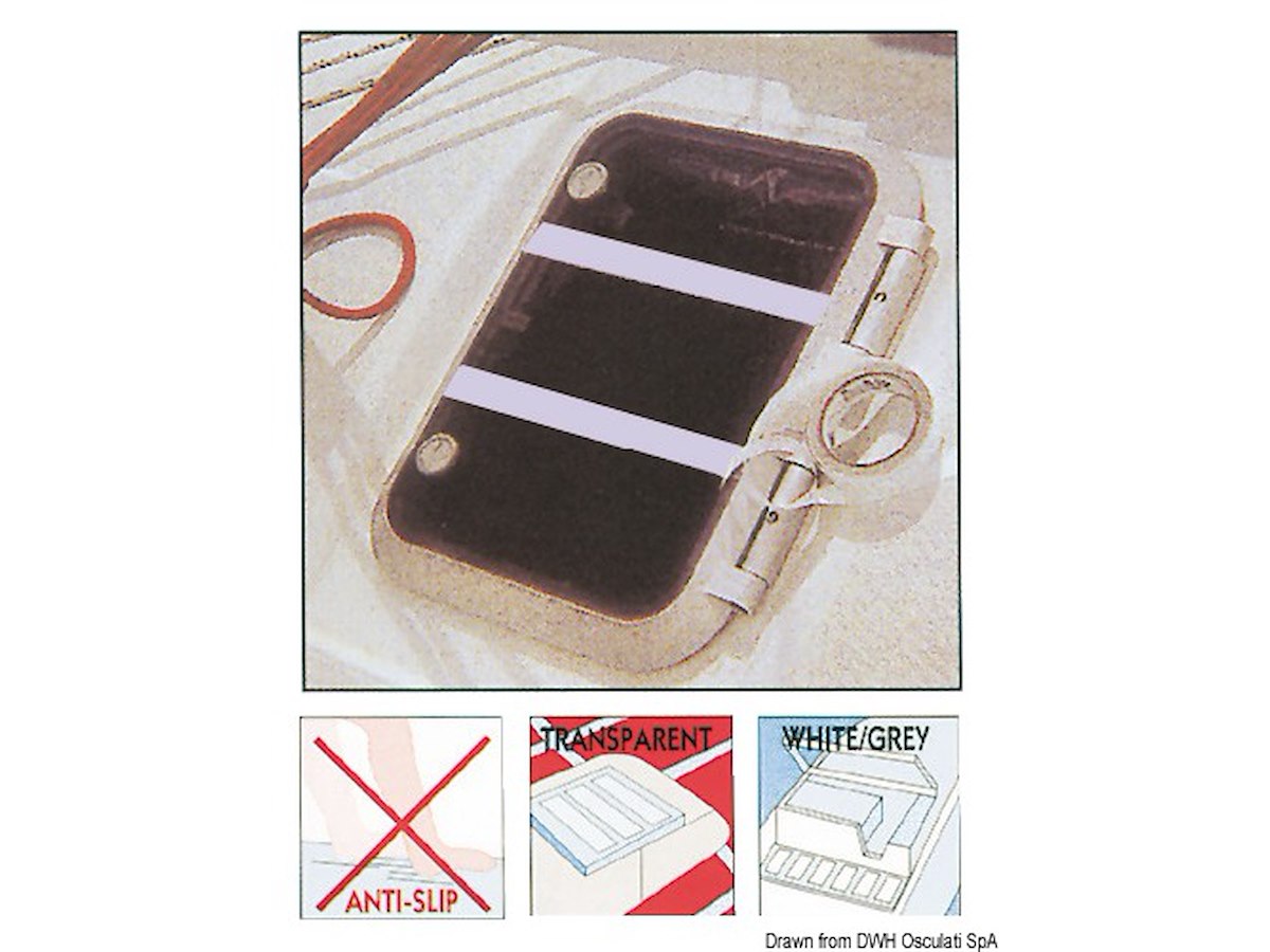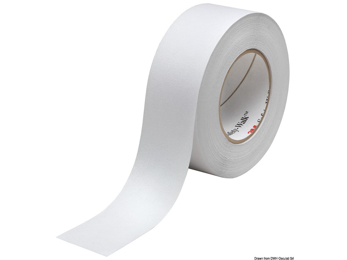 Nastro adesivo antiderapante, garantisce un effetto antisdrucciolo su tutte le superfici dell’imbarcazione senza alterarne l’aspetto estetico. Trasparente per passauomo, bianco per coperta in vetroresina.