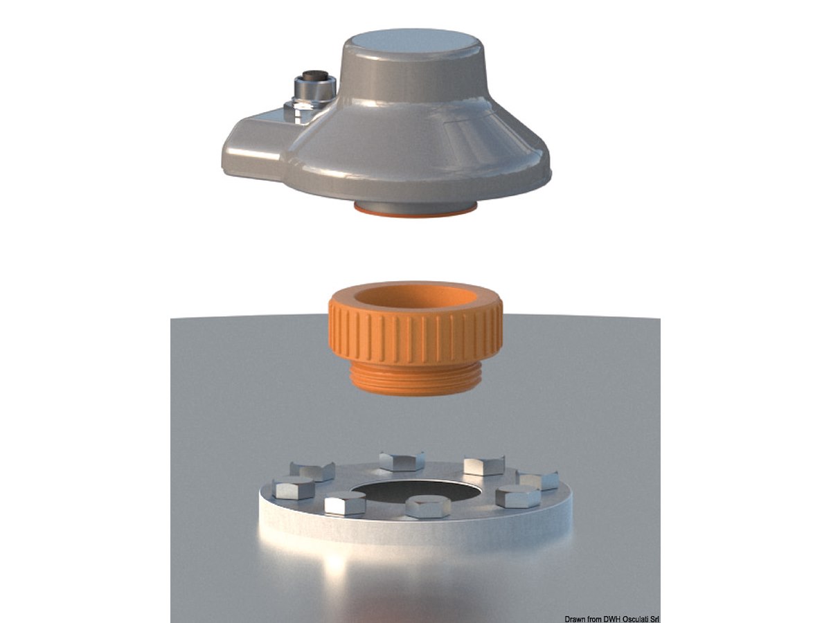 Adattatore speciale per il montaggio del sensore su un serbatoio metallico o di altro materiale con foro preesistente. Per serbatoi che utilizzano flangia S3 è sufficiente montare il Gobius C con questo adattatore. Per flange S5 abbinare l'adattatore Gobius C alla flangia di montaggio codice 52.746.10.