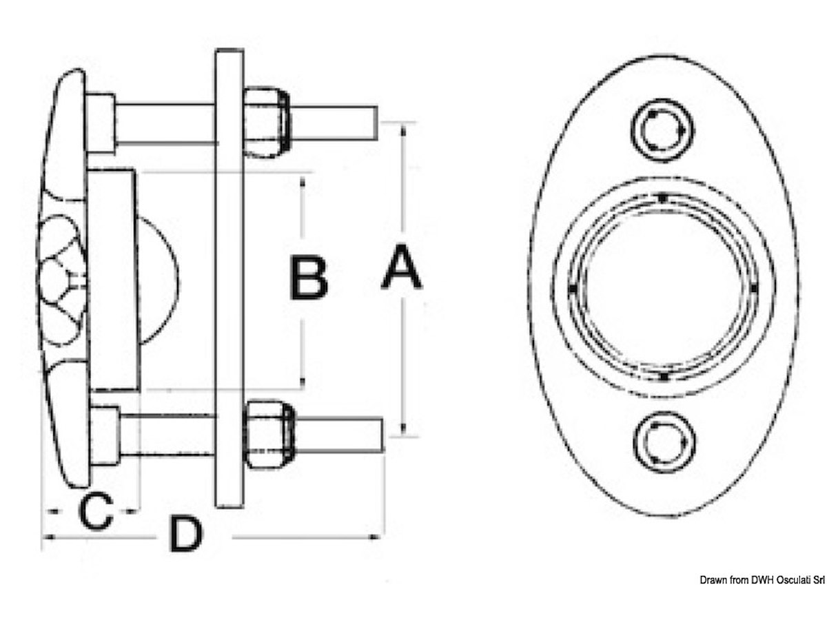 Completamente incassato. In acciaio inox AISI 316 lucidato a specchio . misure mm - A: 75 misure mm - B: 50 misure mm - C: 25 misure mm - D: 85
