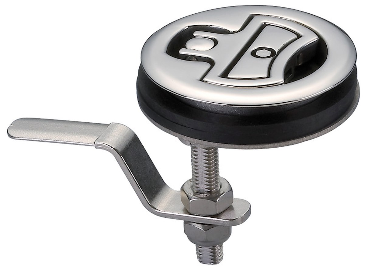 Con sistema a camma eccentrica che, abbassando la maniglietta, trasla verso l’alto la leva interna di fermo, realizzando così una chiusura più sicura, stagna e senza vibrazioni. Allo stesso modo, alzando la maniglietta, la leva interna si alza e libera il portello. Completamente in acciaio inox AISI 316 lucidato a specchio.