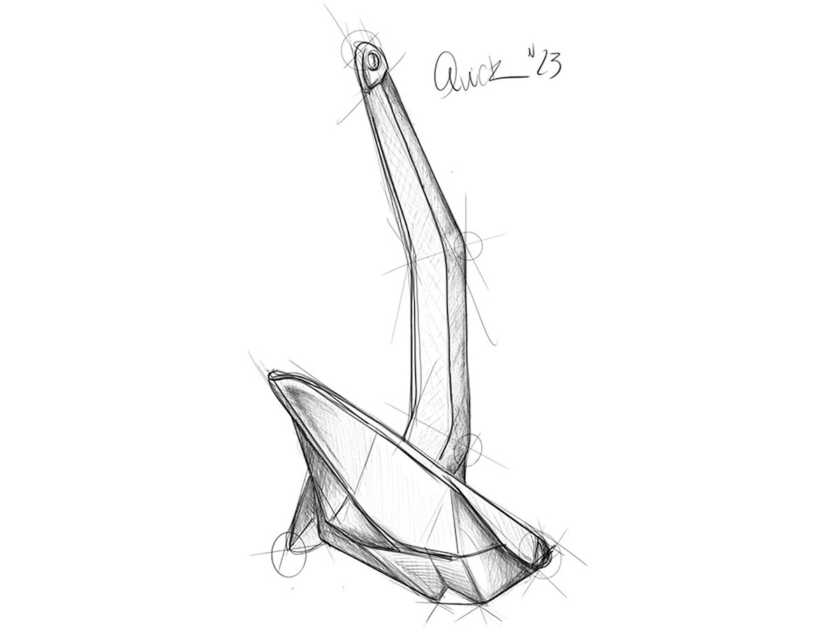 ancora realizzata in acciaio duplex inossidabile particolarmente adatto a lavorare sotto trazione, alta capacità di penetrazione, provvista di alette stabilizzatrici, fuso compatto per l'utilizzo con una vasta gamma di musoni presenti in commercio, dotata di foro posteriore per utilizzo con grippiale