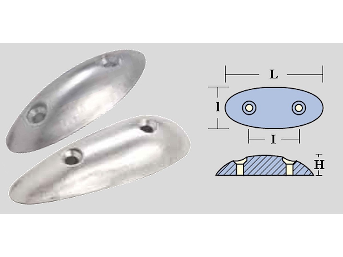 ANODI A PIASTRA OVALE DIMENSIONI L=117,L=43,I=50,H=20 RIF.TI 00201