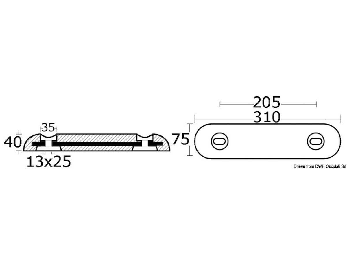Anodo da imbullonare interasse 200 mm in alluminio