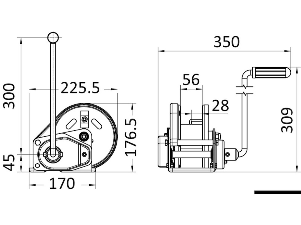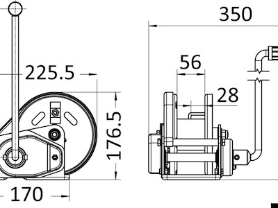 Trazione max kg: 1135 Rapporto: 11.1:1 Capacità cavo m: 17 m di cavo in acciaio Ø 6,35 mm Accessori INCLUDED: 10 m cavo acciaio Ø 6,35 mm + moschettone 1/4"