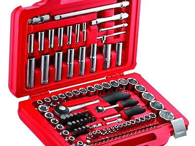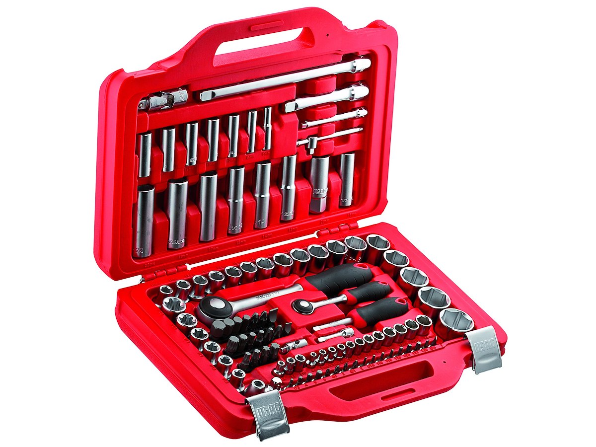 Cassetta con bussole esagonali ed inserti per avvitatura 100 pezzi Usag, Dimensioni cassetta: 415 x 283 x 92 mm, Incluso cricchetto reversibile 1/4'' e 1/2'' con meccanismo a 72 denti e sistema di sgancio della bussola