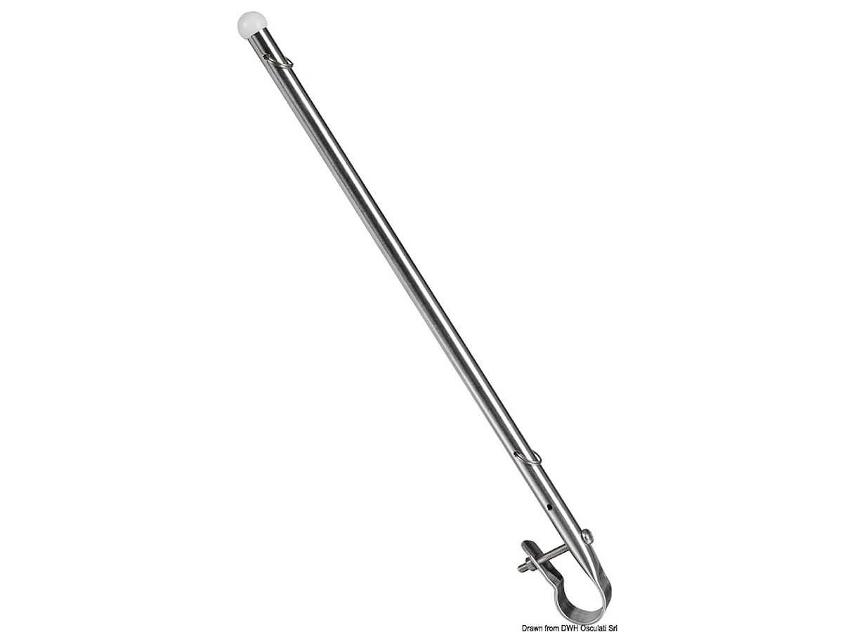 In acciaio inox lucidato. Completa di anelli fissaggio bandiera e pallina terminale antinfortunistica.