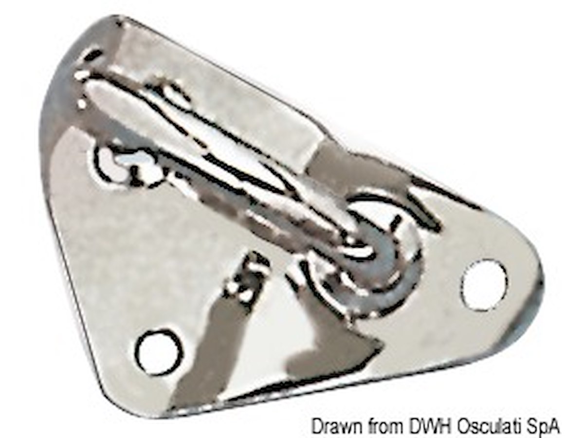 Piastra in acciaio inox con tre fori, adatta per fissaggio su alberi con Ø 55/60 mm. Ø anello mm: 6 Ø fori mm: 5