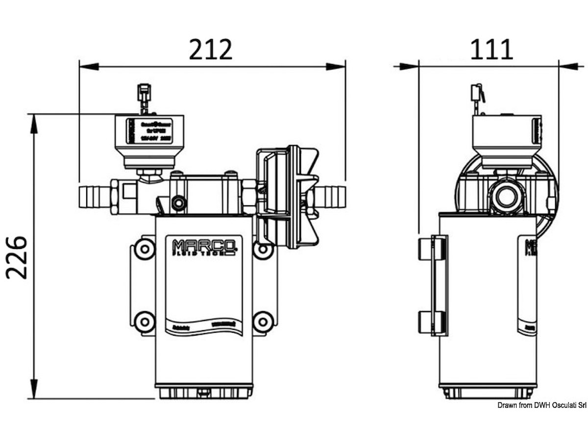 Sigla: UP6/E V: 12/24 Portata max l/min: 26 Pressione bar: 2,5 Pannello di controllo: [16.081.20] OPTIONAL peso : 3.7