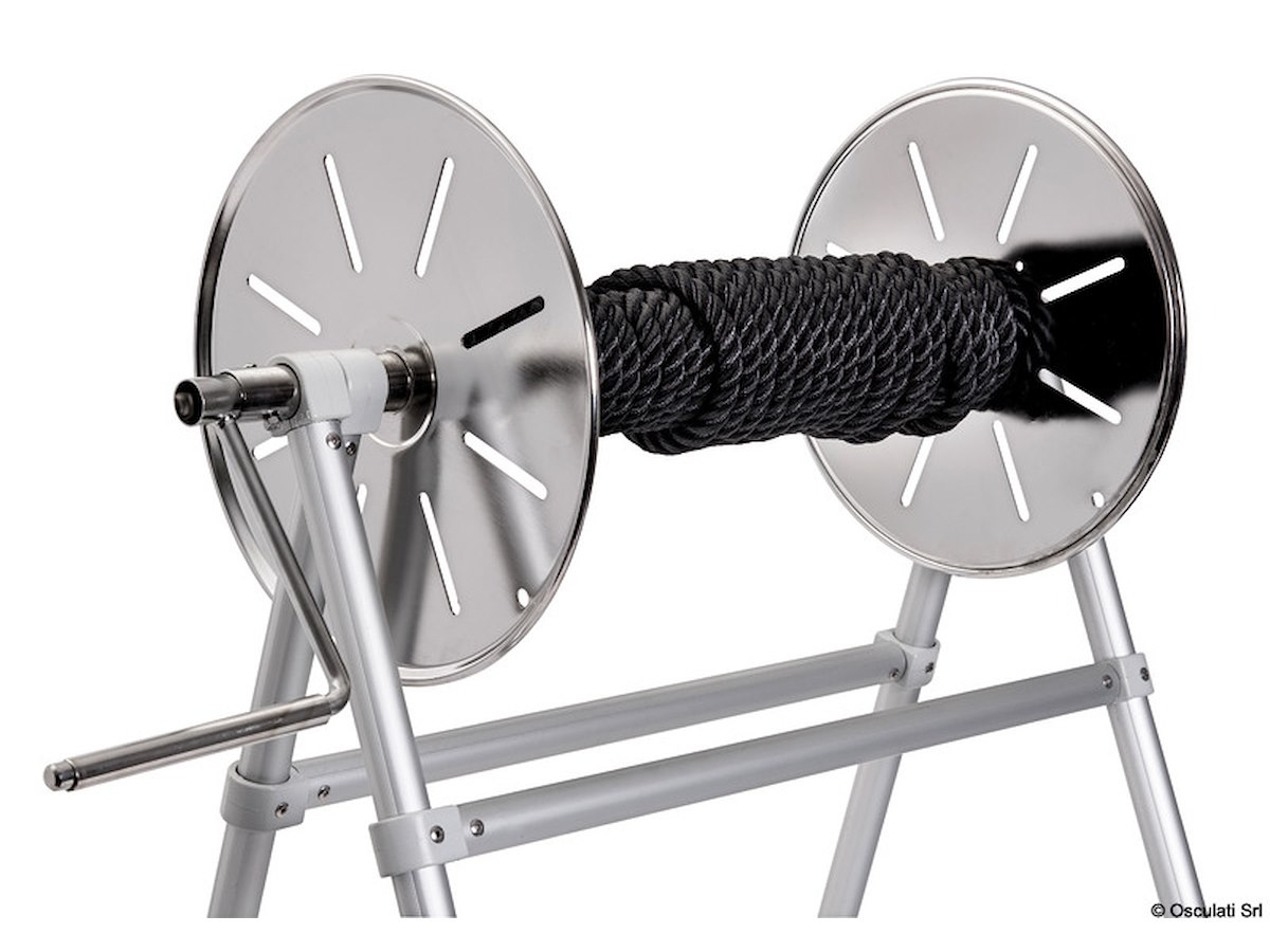 Può stivare 400 m cima Ø 8 mm. Fabbricato in acciaio inox + alluminio anodizzato. misure mm: 600x440x830h