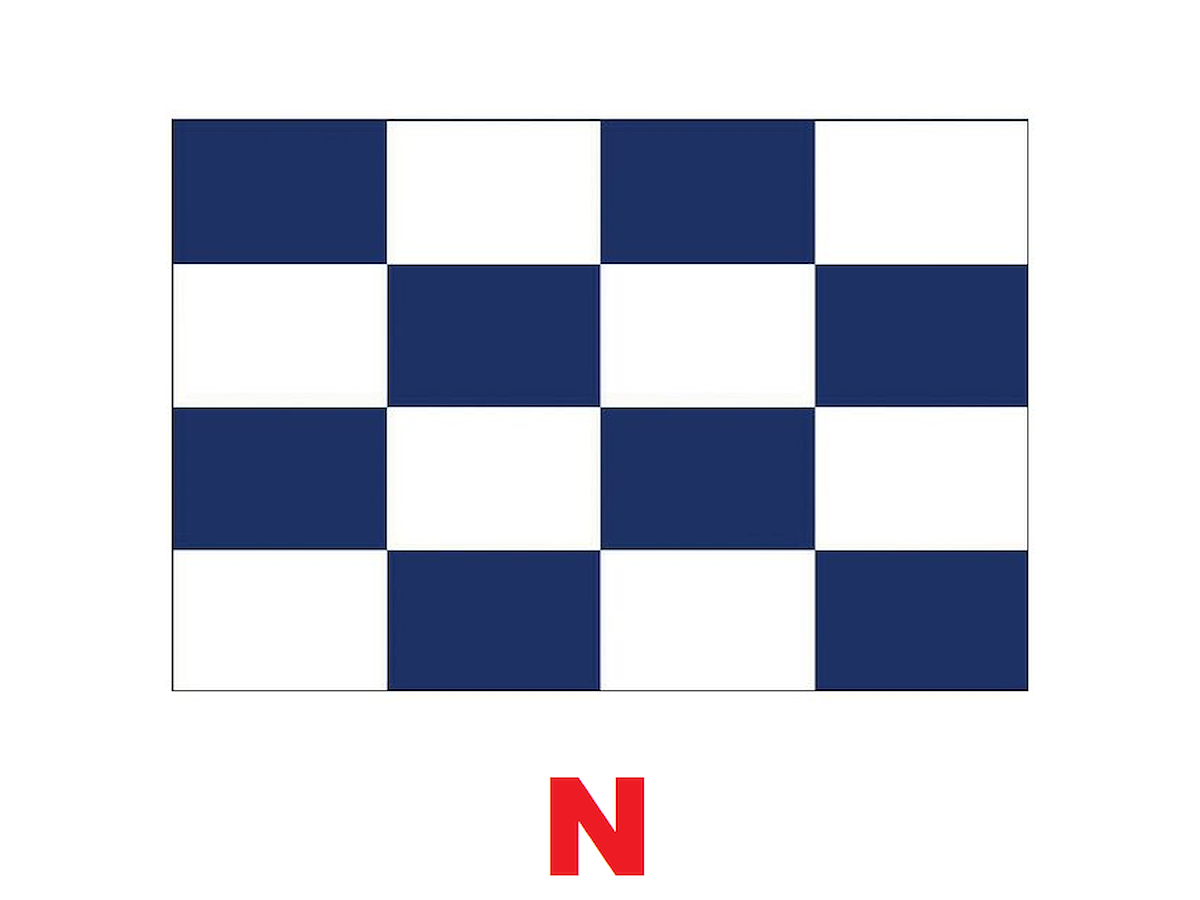 bandiera del codice internazionale in stamina di poliestere pesante, lettera N o risposta ''negativo''