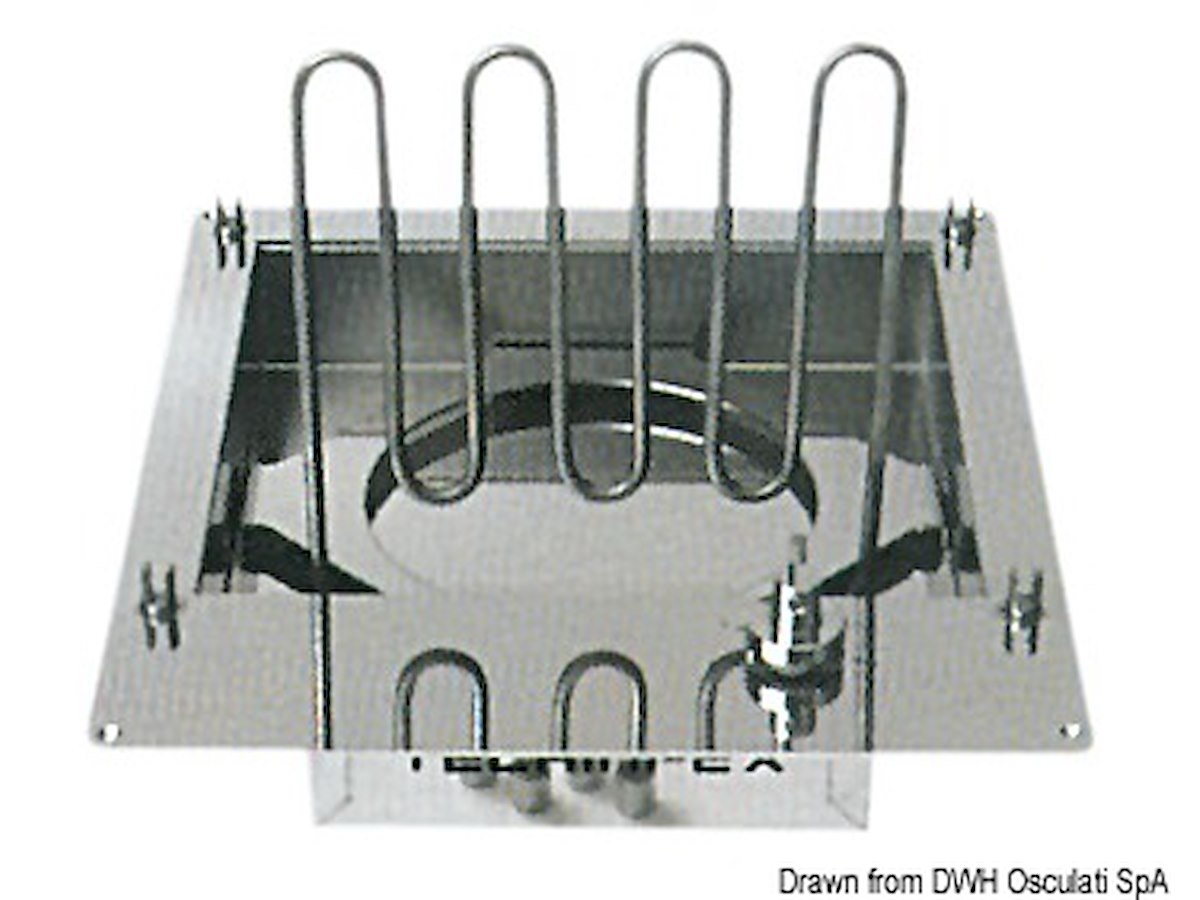 Totalmente in acciaio inox AISI 316, completo di raccogli sughi estraibile, resistenza elettrica basculante, griglia amovibile e fissata con speciali ganci anti-vibrazione.