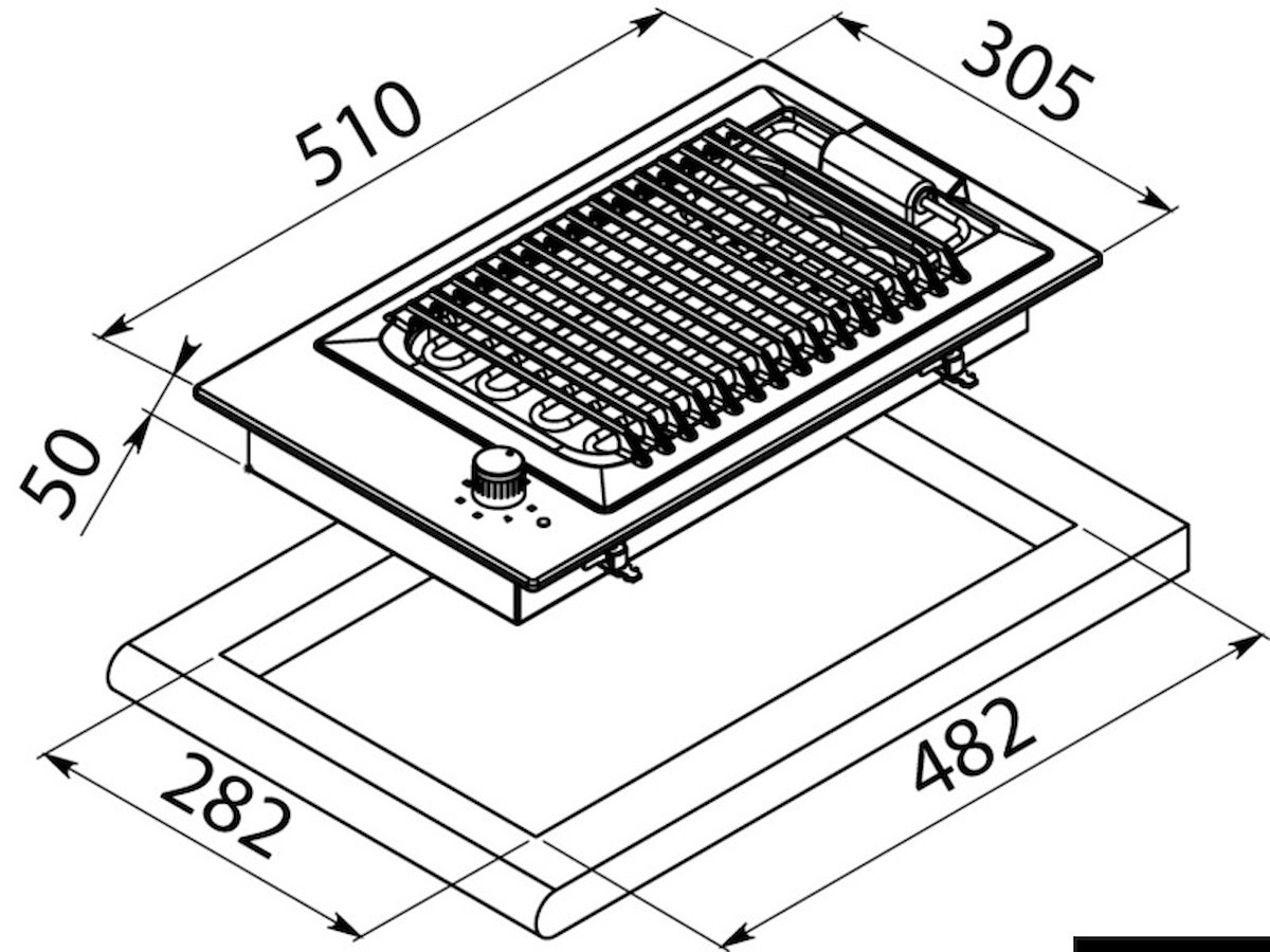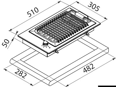 Superficie in acciaio inossidabile. Griglia in ghisa smaltata nera. Sistema di interruzione del surriscaldamento.