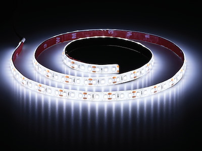 Complete di cavetto terminale bipolare da 30 cm. Si possono tagliare ogni 2,5 cm (12 V) o ogni 5 cm (24 V). Autoadesive con nastro originale 3M.