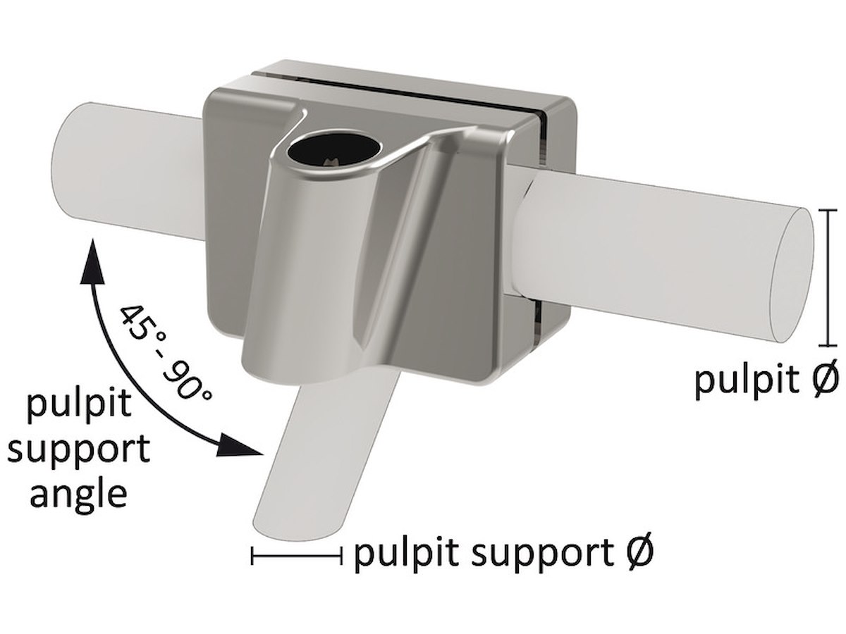 Accoglie un angolo di giunzione del pulpito da 90° a 45°.