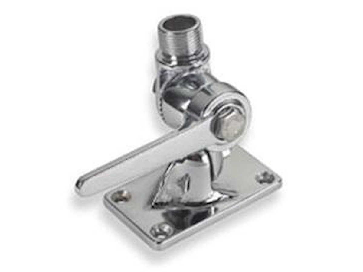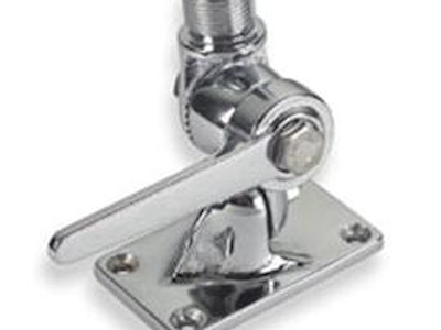 base a doppio snodo per antenna con filetto universale, disponibile in versione realizzata in ottone cromato oppure in acciaio inox