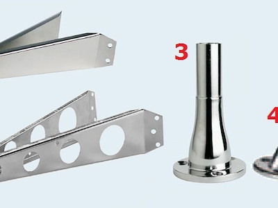 basi universali realizzate in acciaio inox, attacco antenna Ø25mm