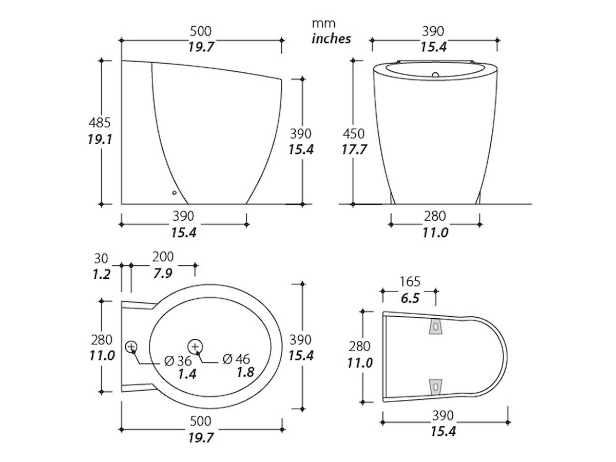 BIDET TECMA PRIVILEGE H (MM) 485 L (MM) 390
