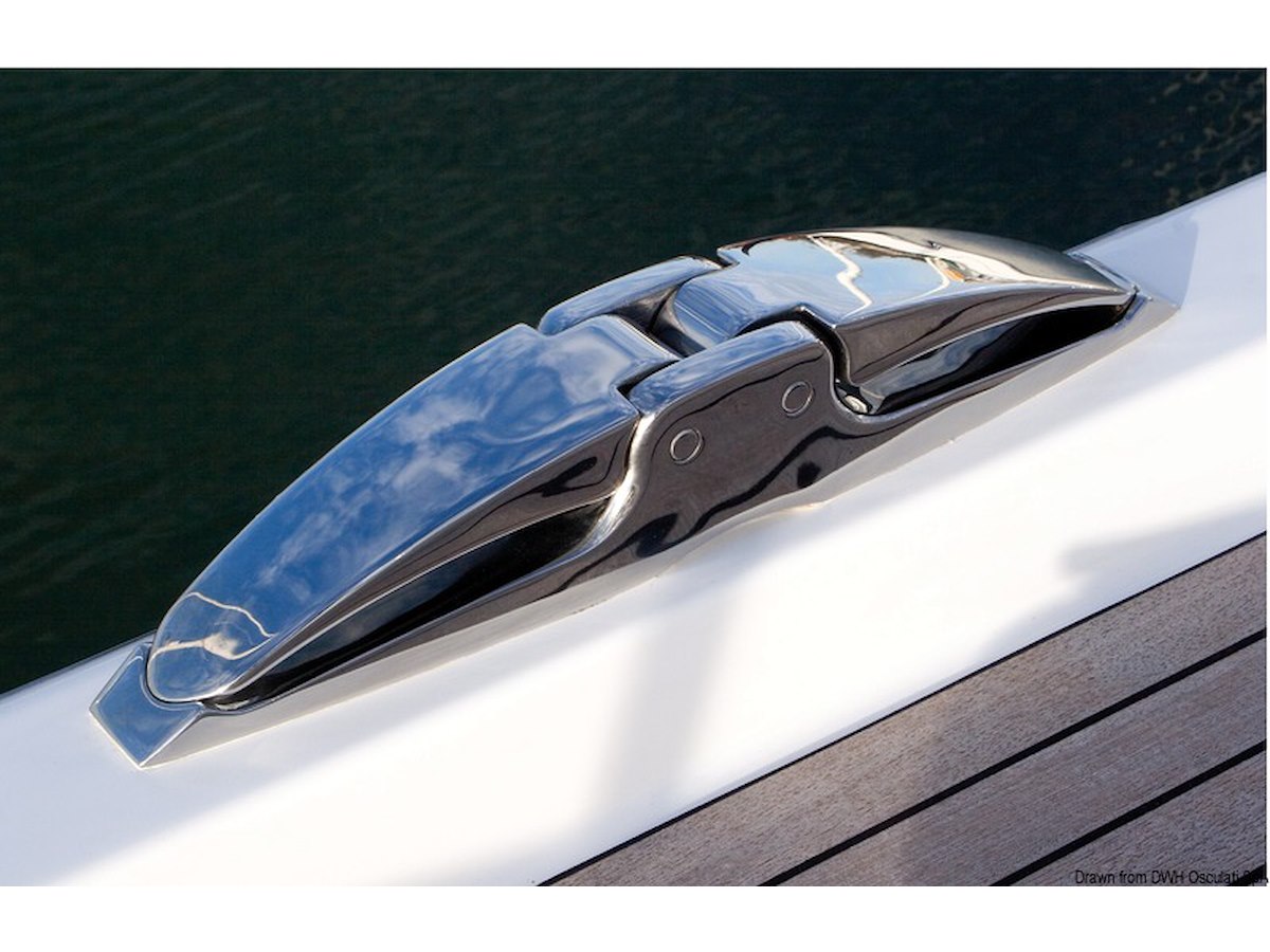 Fabbricate in acciaio inox AISI 316 lucidato a specchio. Il meccanismo di apertura / chiusura è dotato di eccentrico a scatto che evita aperture accidentali.