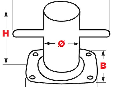 BITTE DA PONTILE CROSS BOLLARD BASE AXB BASE 90X80 MM FUSTO Ø - H FUSTO Ø50 H95