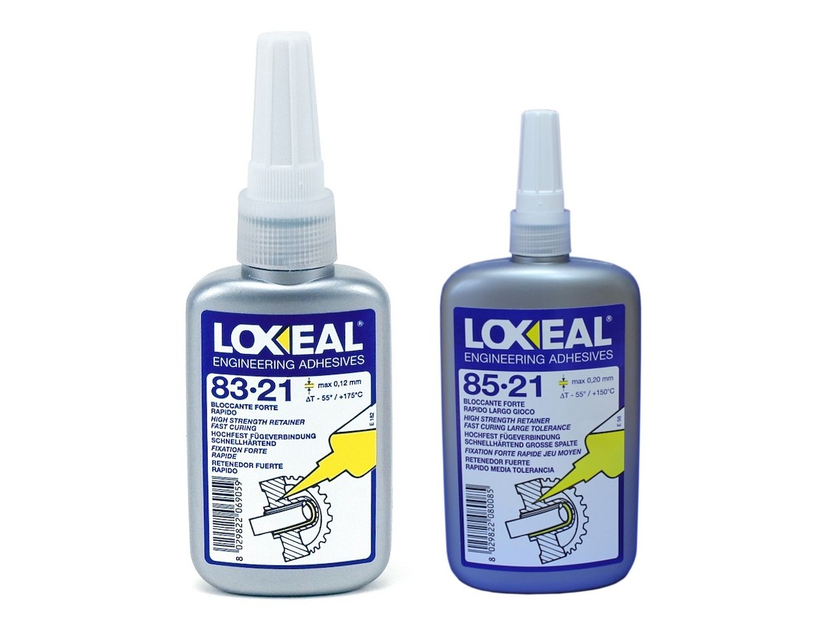 adesivi anaerobici Loxeal per metalli a rapida polimerizzazione ed elevata resistenza meccanica per sigillare e bloccare giunzioni filettate ed accoppiamenti cilindrici. Dotati di alta resistenza agli sbalzi termici, alle vibrazioni, agli agenti chimici ed all'invecchiamento