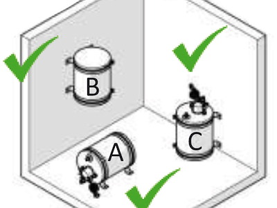 Modello B) Con caldaia in acciaio inox AISI 316 e rivestimento esterno in alluminio similinox lucidato a specchio. Scambiatore di calore in acciaio inox. Completi di rubinetto di scarico frontale. Possibilità di montaggio sui tre assi.