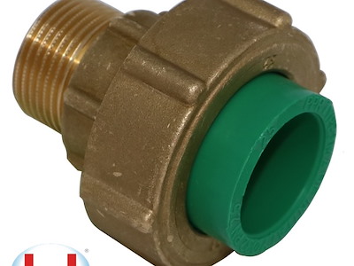 bocchettone a 3 pezzi per sistema tech evolution PN 20 (SDR 6) con estremità per la saldatura e l'altra maschio filettata R-EN 10226