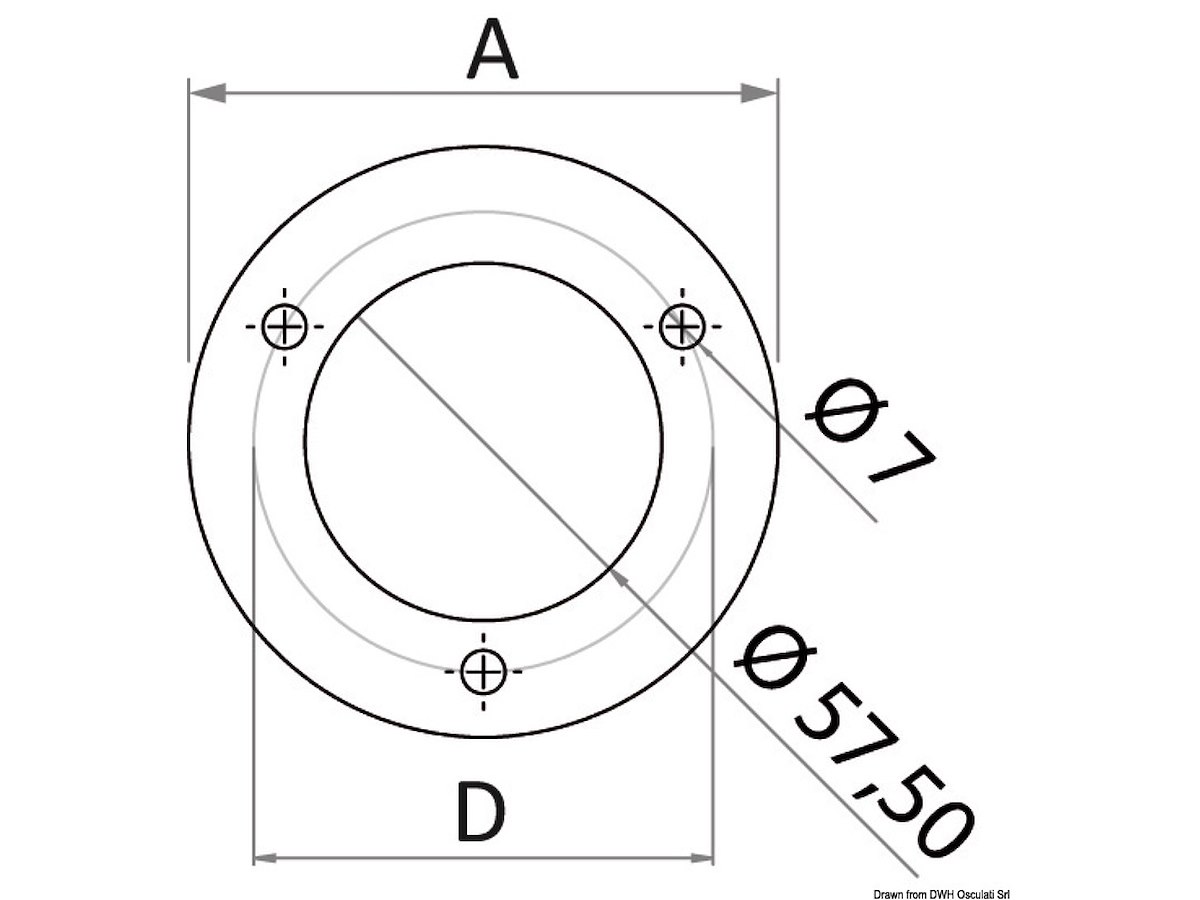 Per pali da Ø mm: 38 Descrizione: Controflangia di montaggio per boccola da incasso misure mm - A: 95 misure mm - D: 74