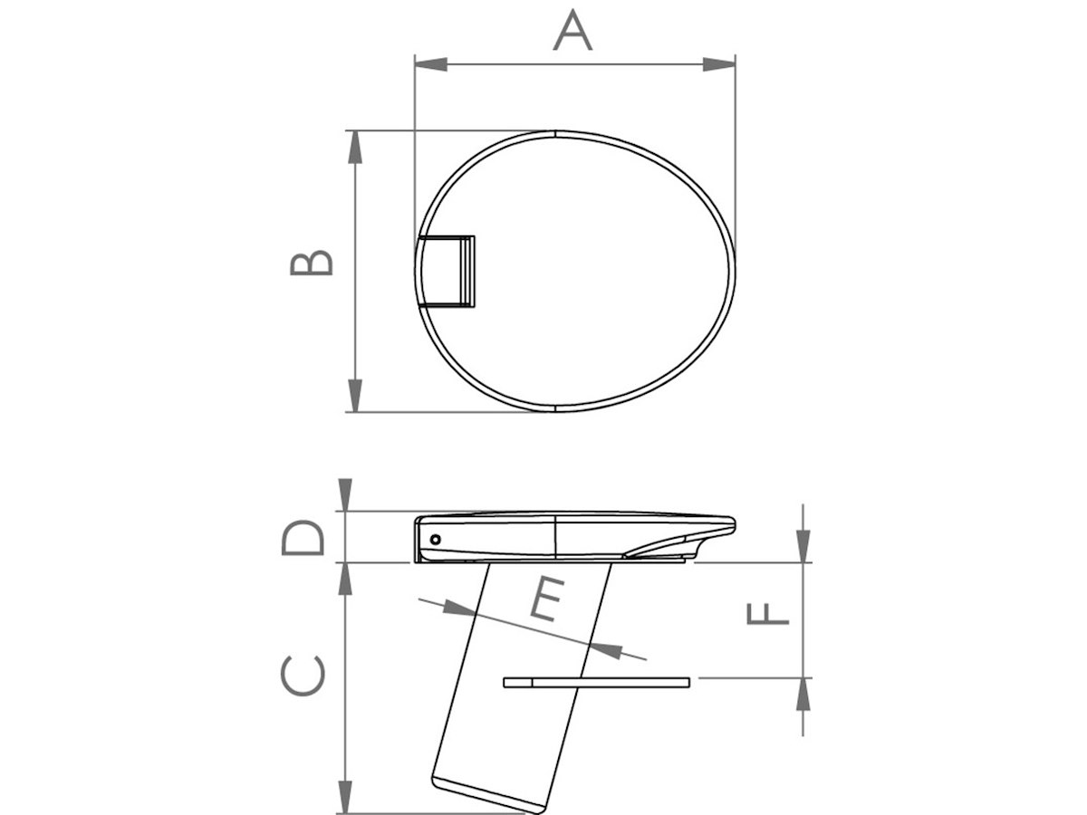 Descrizione: Con tappo stagno Per pali da ø mm: 16 misure mm - A: 69 misure mm - B: 62 misure mm - C: 54 misure mm - D: 10 misure mm - E: 26 Spessore di coperta F min/max mm: 2/50