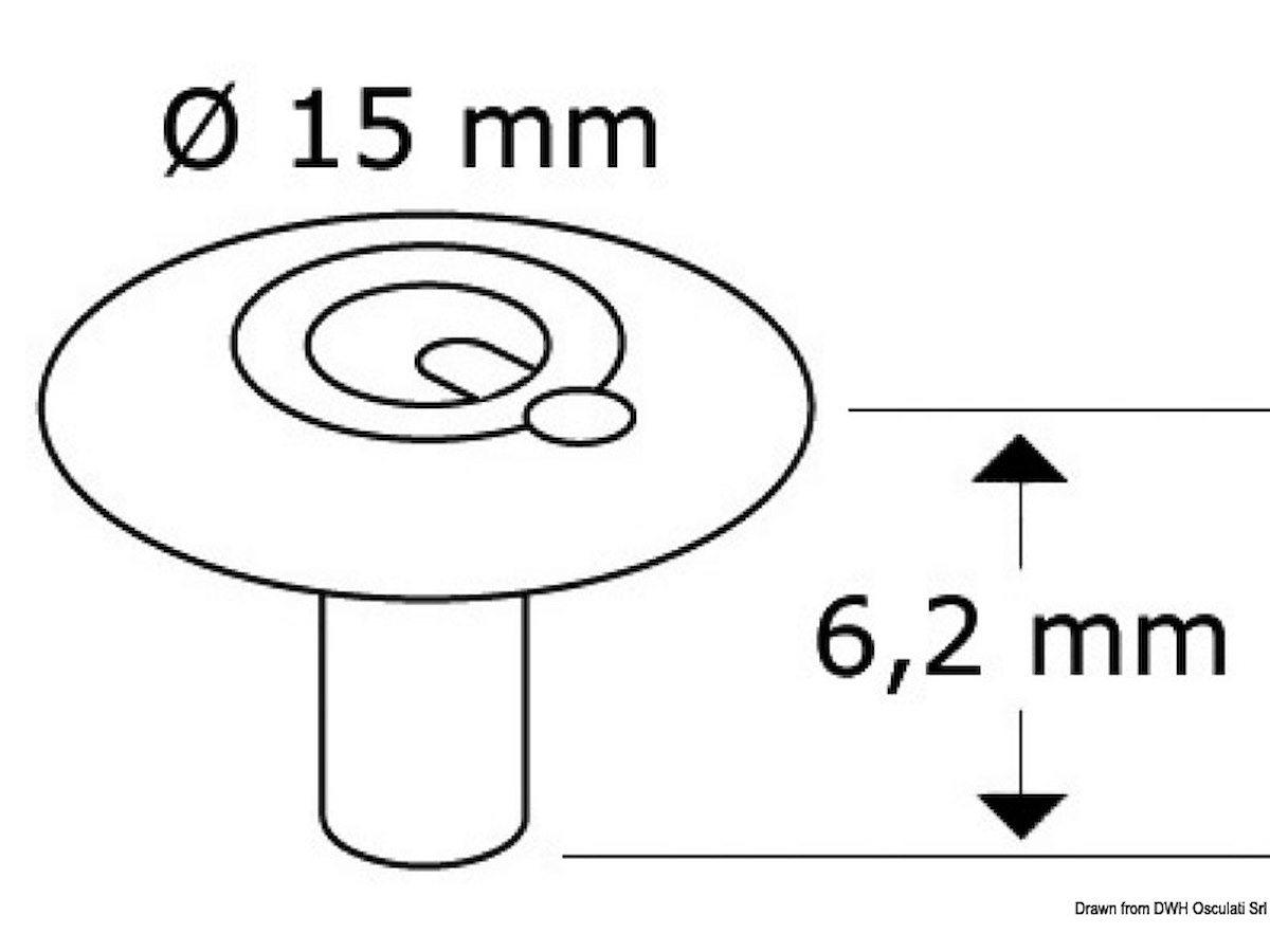 Bottoni in acciaio inox AISI 316. Il maschio presenta un dente di aggancio per la femmina, che a sua volta ha uno specifico labbro di ritegno. Le due novità combinate permettono di tendere al meglio il telo e nello stesso tempo ne evitano lo sgancio accidentale.