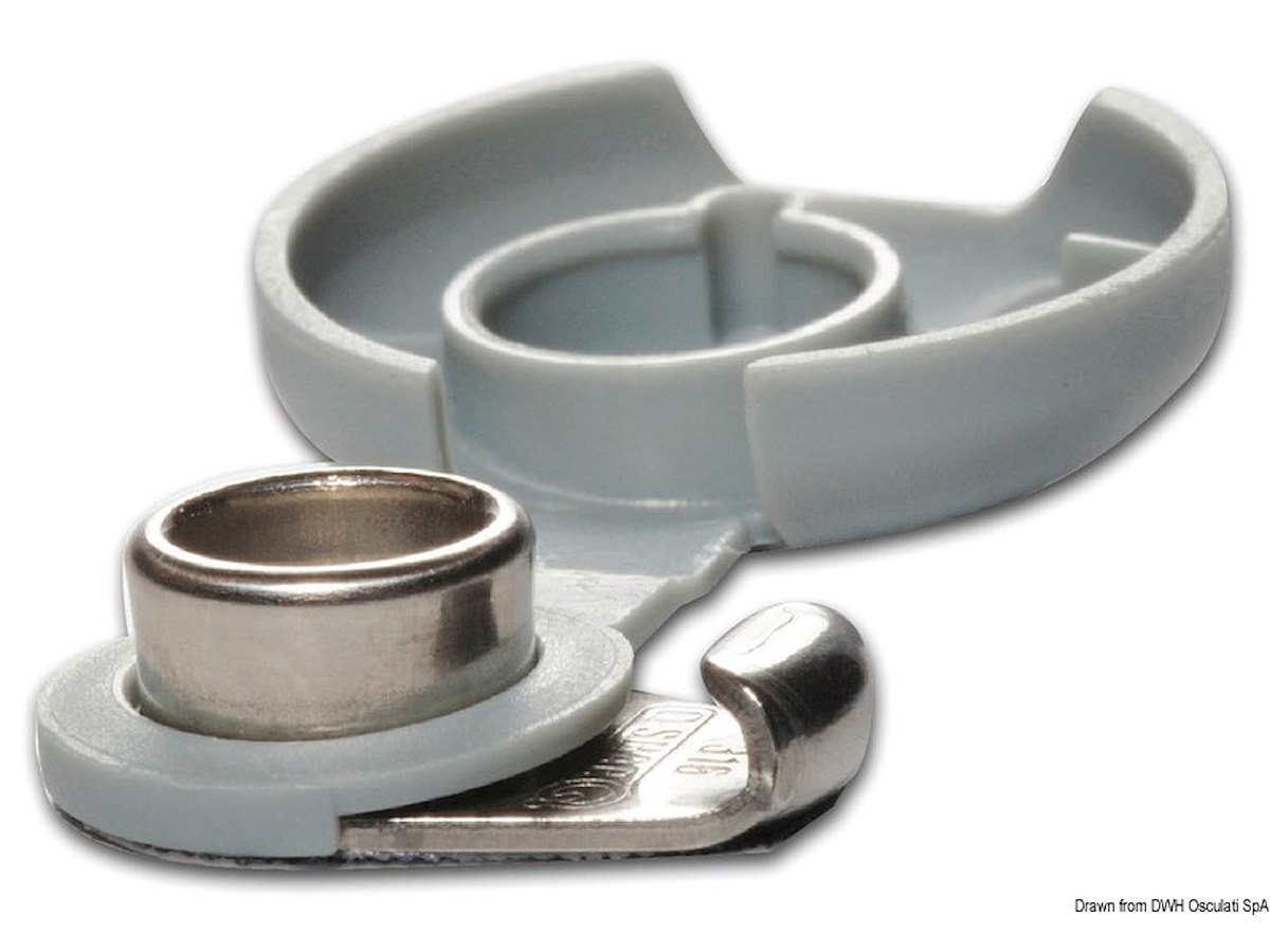 Il maschio presenta un dente di aggancio per la femmina, che a sua volta ha uno specifico labbro di ritegno. Le due novità combinate permettono di tendere al meglio il telo e nello stesso tempo ne evitano lo sgancio accidentale.