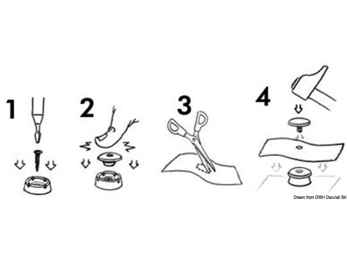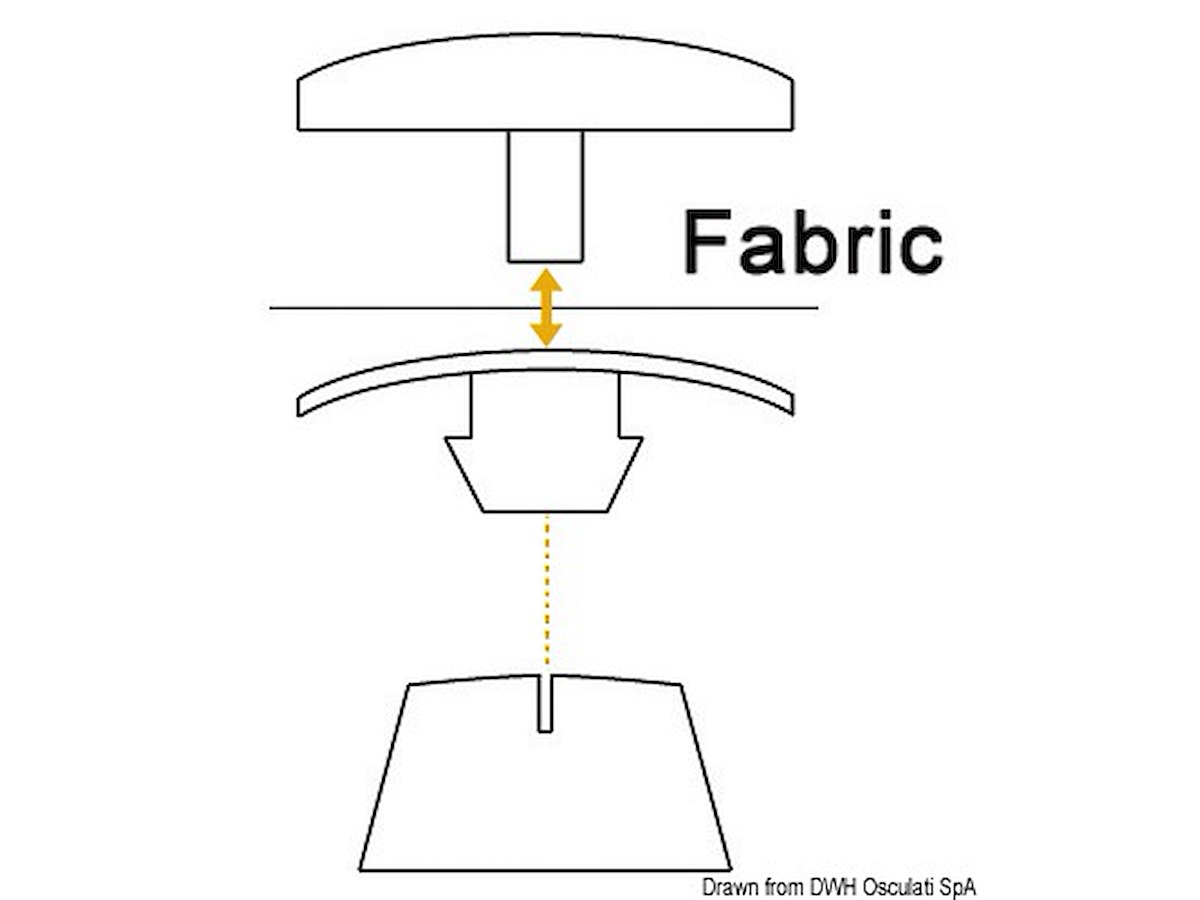 Prodotti in nylon anti UV e anti corrosione. Sono facili da installare ed hanno una tenuta garantita e resistente. Foro richiesto nel tessuto 5 mm. Ø testa mm 18