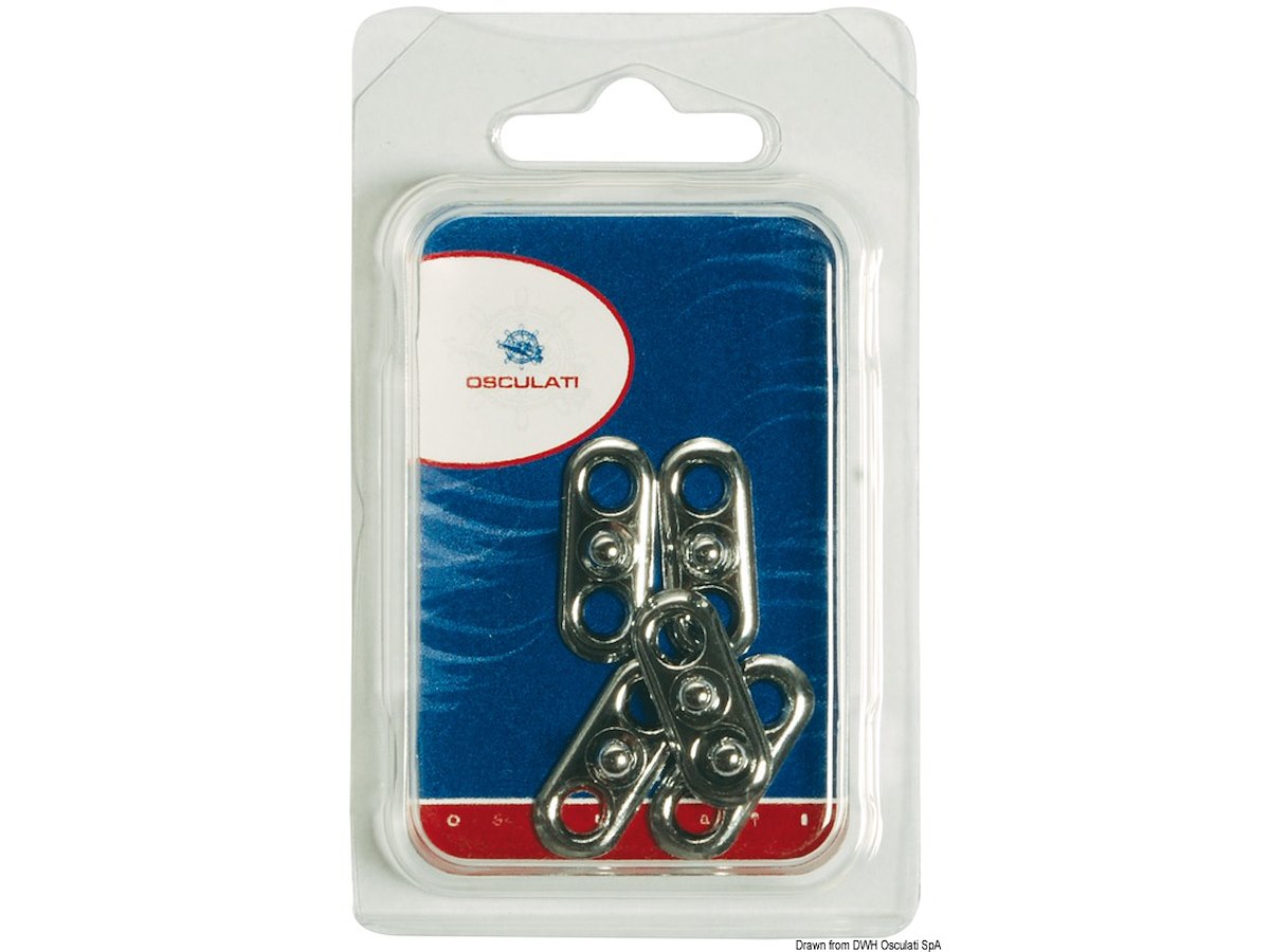 Descrizione: Maschio con piastrina fissabile con viti o rivetti Materiale: Ottone cromato pcs : 5 (blister)