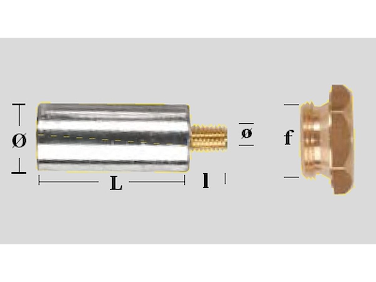 tipo: anodo dimensioni: Ø20,ø8,L45,l=11 rif.ti: BD.381-02300