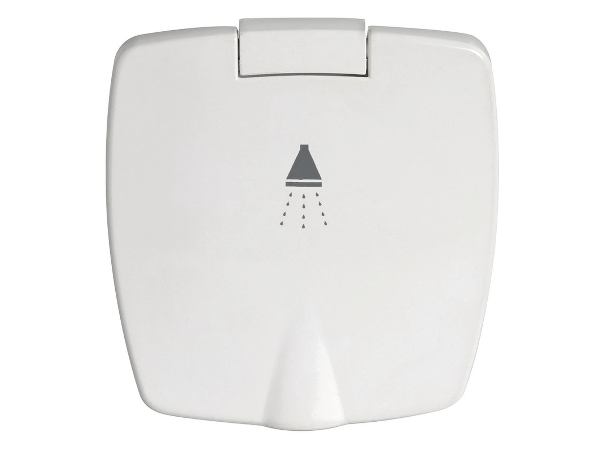 Doccia in ottone cromato, vano di alloggiamento bianco in ASA UV resistente.