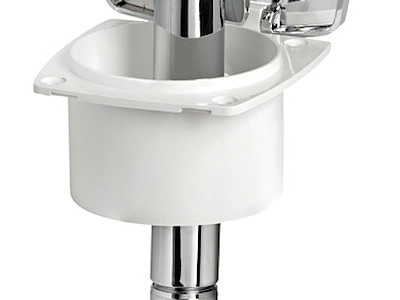 Doccia in ABS cromato, vano di allaggiamento bianco in ASA UV resistente.