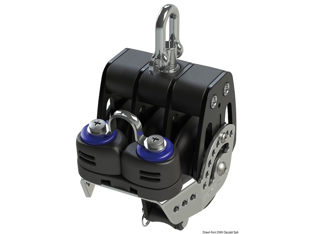 Variante: Puleggia Ø 60 Tipo: Triplo con arricavo e strozzatore Puleggia Ø 50 - carico max lavoro: 1100 Puleggia Ø 50 - per cime max: 12