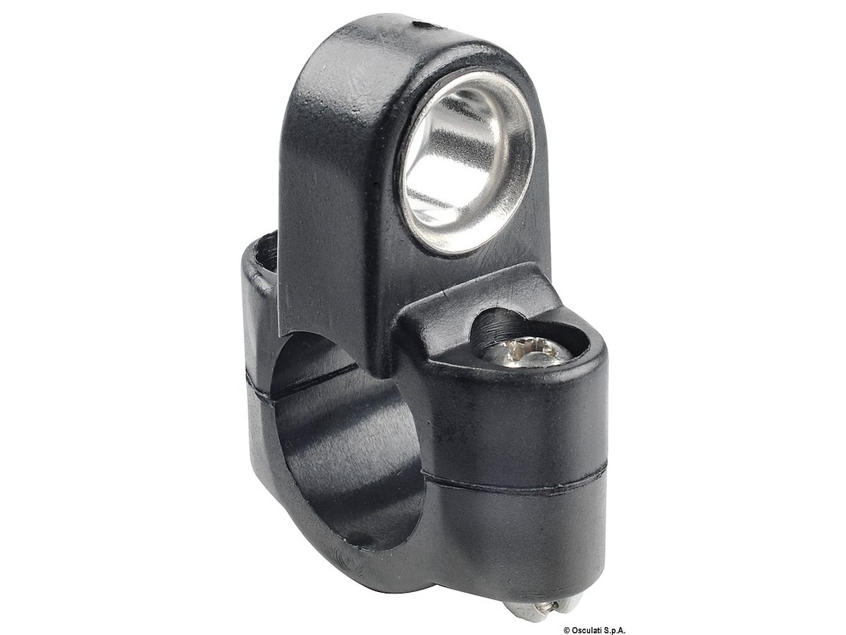 A) Fabbricato in nylon, totalmente snodato sui 2 assi. B) Fabbricato in naylon, con passaggio scotta in acciaio inox.