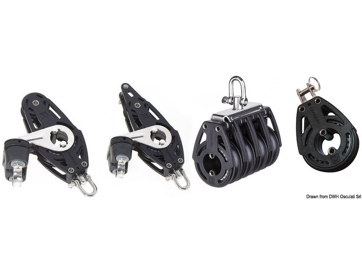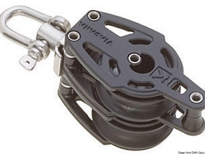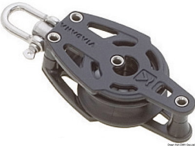 Modello: 1 puleggia girevole Adatto per cime da mm: 12 Puleggia Ø mm: 57 Carico di rottura kg: 1.080 Carico di lavoro kg: 320