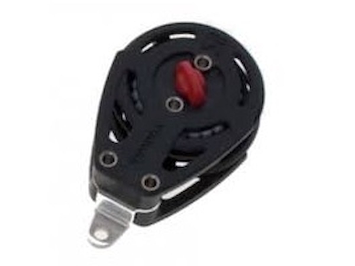 bozzelli winch a doppio giro di sfere in Delrin, con puleggia in fibra di carbonio Ø57mm che esercita un azione frenante sulla scotta, raccomandati per scotte max 10mm