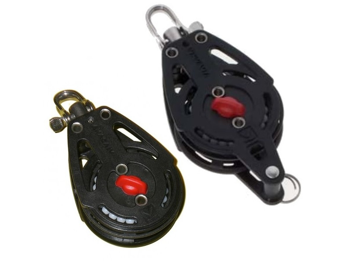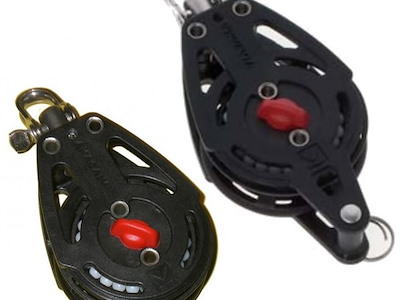 bozzelli winch a doppio giro di sfere in Delrin, con puleggia in fibra di carbonio Ø57mm che esercita un azione frenante sulla scotta, raccomandati per scotte max 10mm