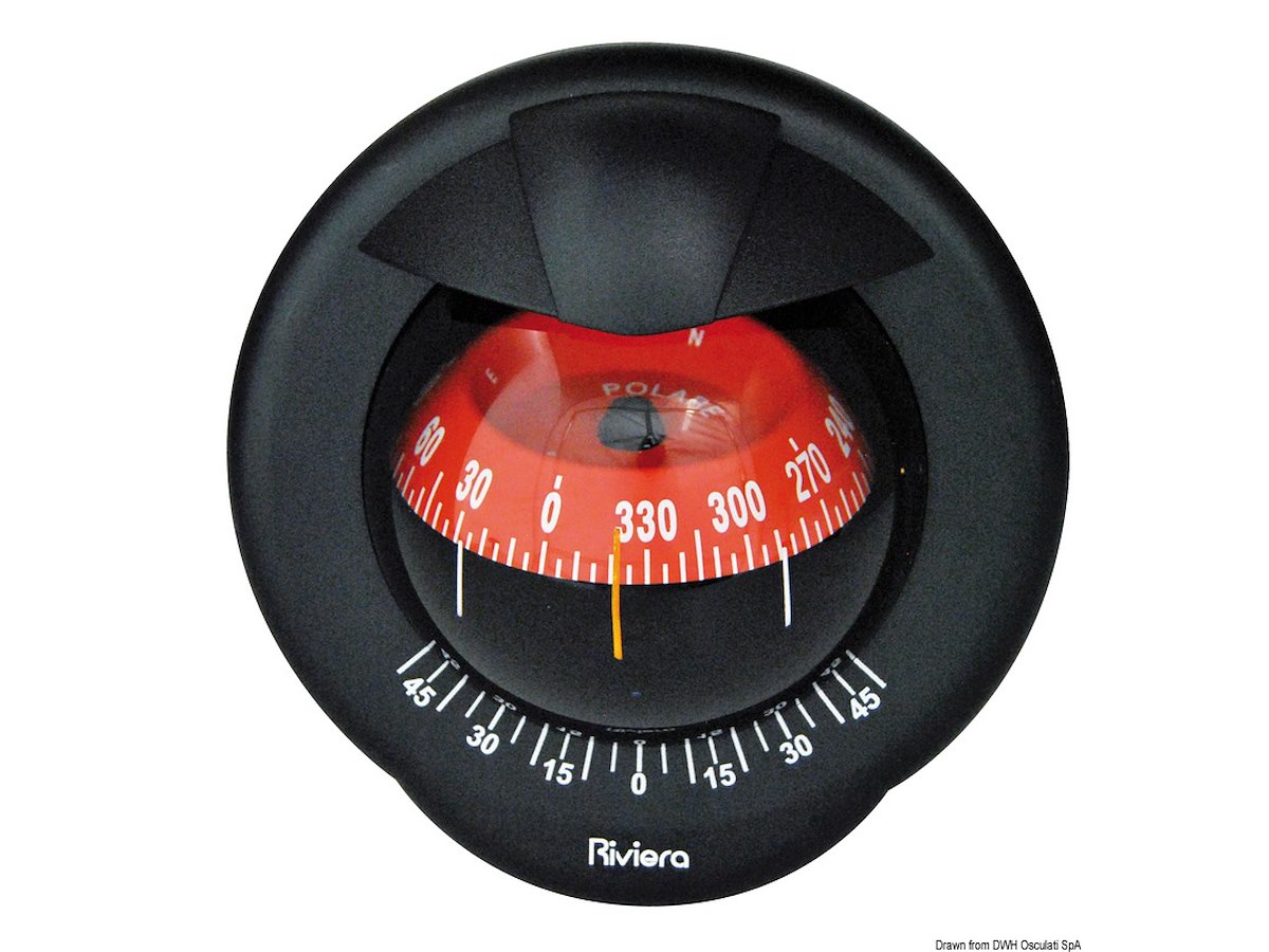 Con cardano interno, inclinometro, illuminazione 12/24 V, divisione rosa 5°. Calotta posteriore e cover incluse.