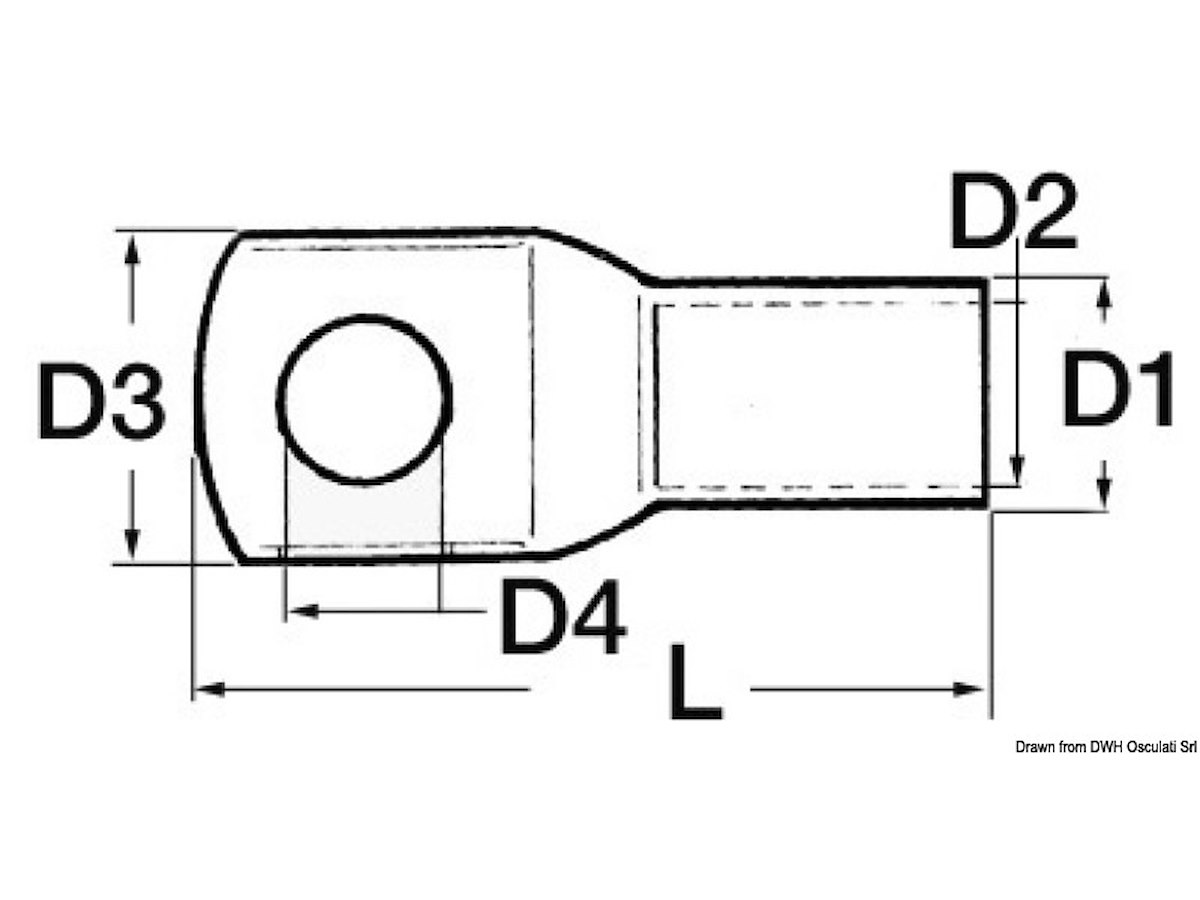 Sezione cavo mm²: 10 D3 mm: 13,5 L mm: 31 D4 mm: 6,4 D2 mm: 4,7 D1 mm: 6,5 pcs : 100 Utensile per fissare i capicorda sui cavi elettrici: [14.035.30]
