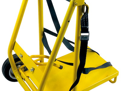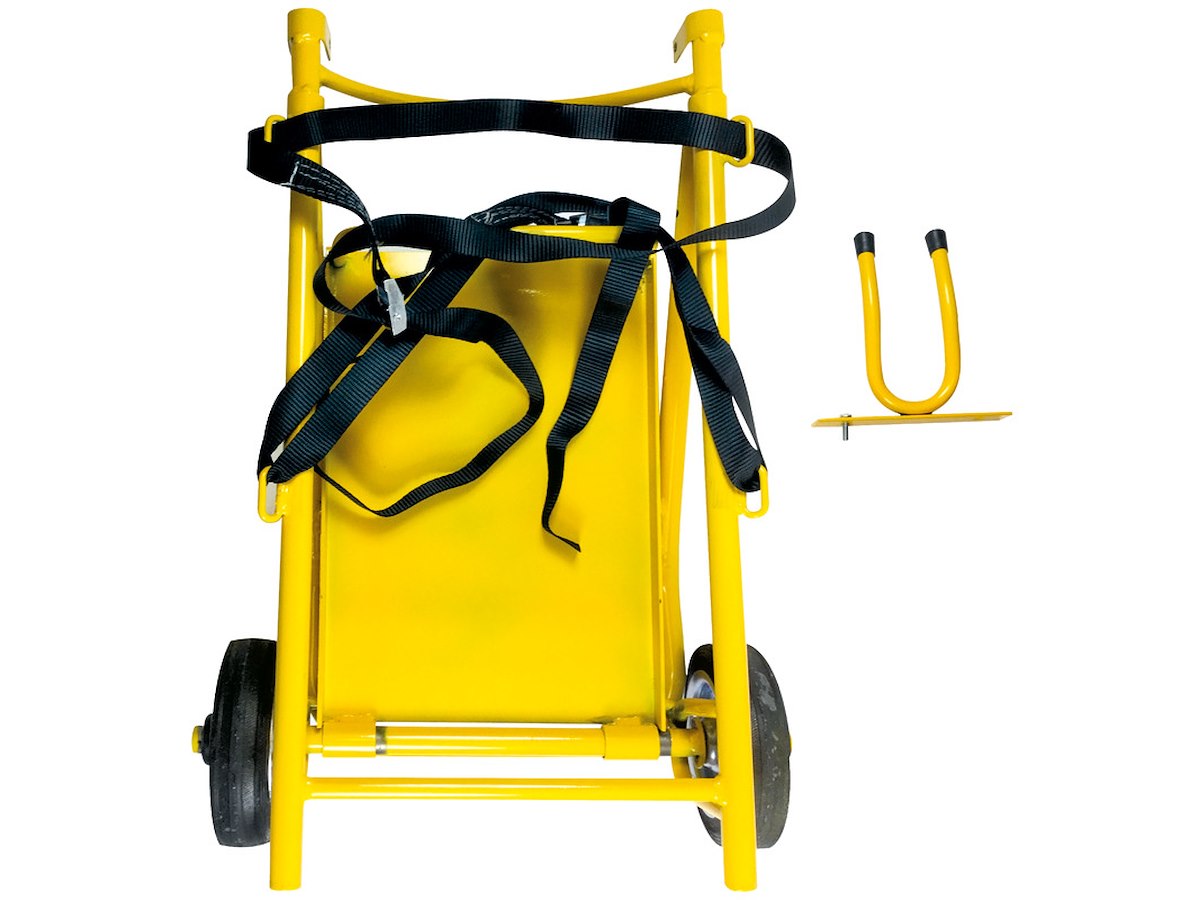 Il carello porta bombola è facile da montare, leggero, pieghevole e maneggevole. Viene fornito con cinghie che servono ad assicurare la bombola durante il trasporto ed un supporto apposito per la termopistola (codice 46.177.00 ).