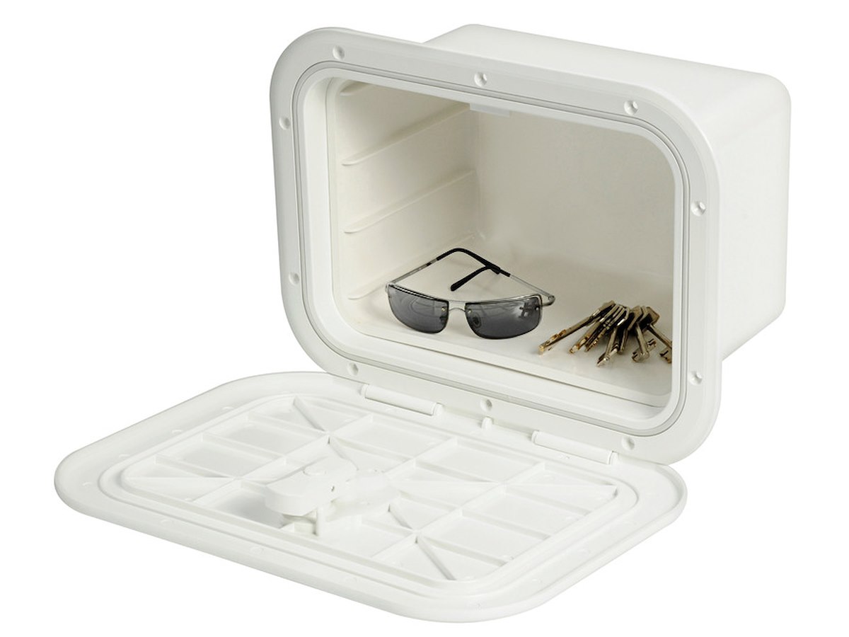 Variante: COLORE_bianco_pieno Bianco Esterno mm: 380x280 Interno mm: 280x180 Profondità mm: 180 Portello tipo: [20.291.00] Kit serratura OPTIONAL: [20.093.00]