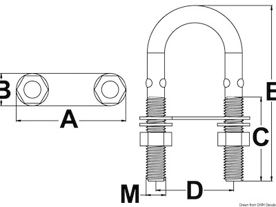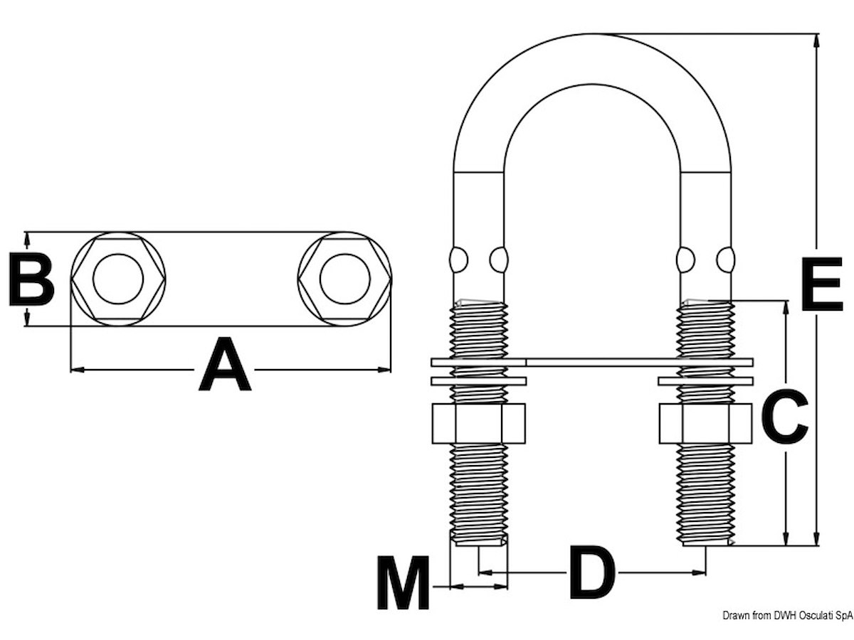 A mm: 45 B mm: 12 C mm: 30 D mm: 30 E mm: 60 M mm: M4 pcs : 10 Carico di rottura kg: 1100