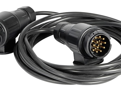Per trasferimento del segnale elettronico tra veicolo trainante e rimorchio. Connessione di tipo europeo. Impermeabile e resistente.
