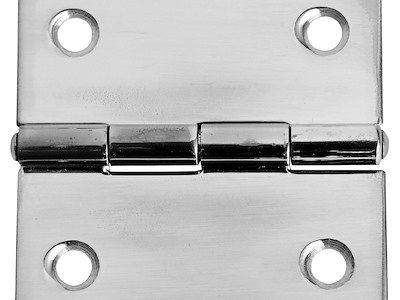 Cerniere rettangolari in acciaio inox lucidate a specchio.