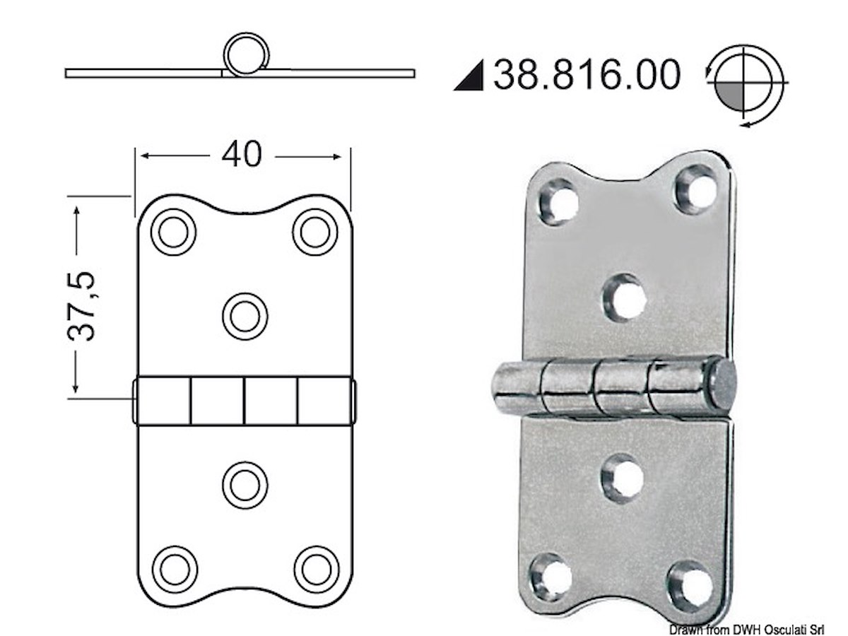 In acciaio inox, lucidate a specchio, con smorzamento delle vibrazioni tramite asse centrale frenato. misure mm: 75x40 Modello: Nodo sporgente
