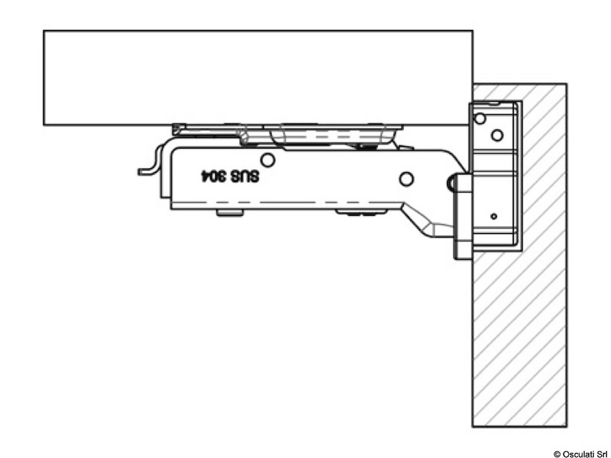 In acciaio inox. Apertura a 105°. Oltre 45° lo sportello resta aperto in qualsiasi posizione si desideri. La chiusura è frenata Soft Close. Complete di dispositivo click-on per sgancio rapido dello sportello.