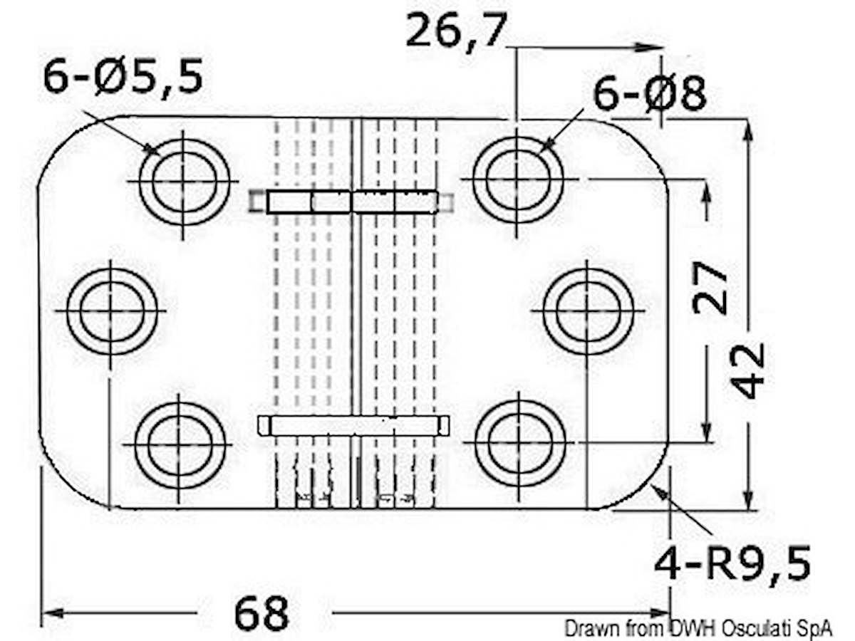 Materiale: AISI 304 misure mm: 68x42